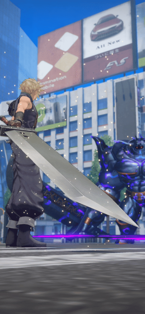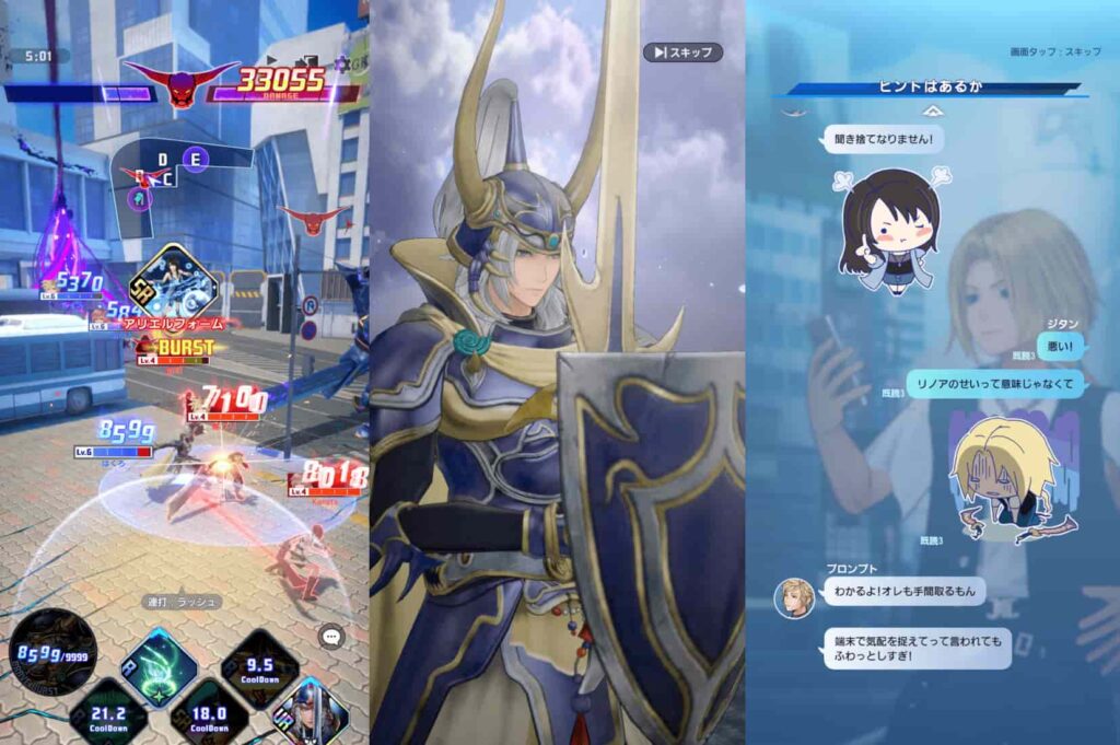 何もわからない場所に投げ出されたクラウドがセフィロスを追いかけたら現代に到着。セフィロスはモンスターを召喚しクラウドに向かわせ、わけもわからず戦いになったクラウドをライトニングたち仲間が助けるというストーリーから始まる。なおストーリーはムービーとチャットの2種類があり、ムービーはフルボイス。