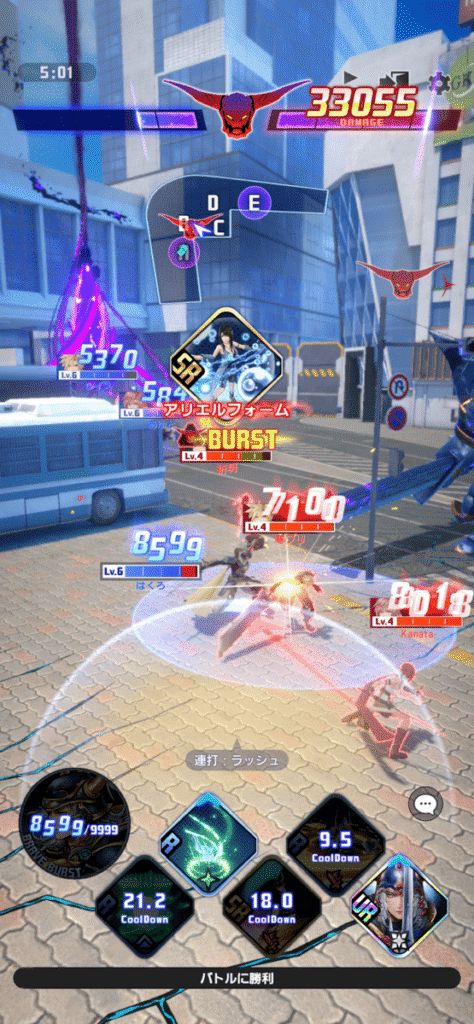 バトルはロール(役割)ごとに分けられて3対3のバトル。アビリティは5個装備でき、各キャラに固有のURアビリティが2種類、SRは1種類、Rが1種類あります。