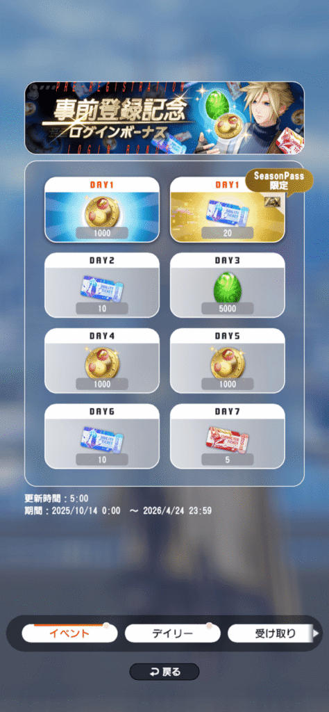 事前登録報酬は7日間連続で配布+チュートリアルミッション